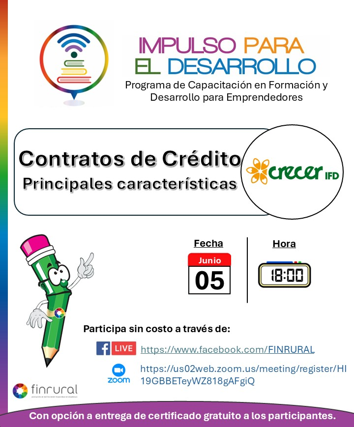 IMPRO IFD, INVITA A LA POBLACIÓN EN GENERAL A PARTICIPAR DEL PROGRAMA DE CAPACITACION EN FORMACION Y DESARROLLO PARA EMPRENDEDORES "IMPULSO PARA EL DESARROLLO". CON EL TEMA "Contratos de Créditos: Principales Características".